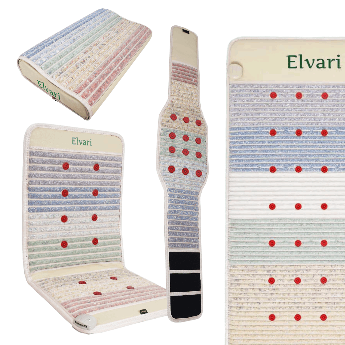 Das Elvari Premium Bundle vereint die Elvari Kristallmatte, die Kristallmatte Mini, den Kristallgürtel und das Kristallkissen.